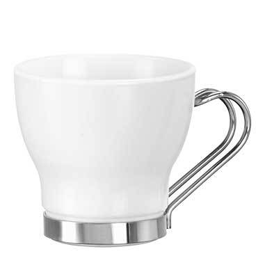 衛生的で実用的で革新的な素材であるオパールガラス製のオスロホワイトエスプレッソカップは、細くて直線的でモダンなデザインで、実用的で耐久性のある金属製のハンドルが付いています。