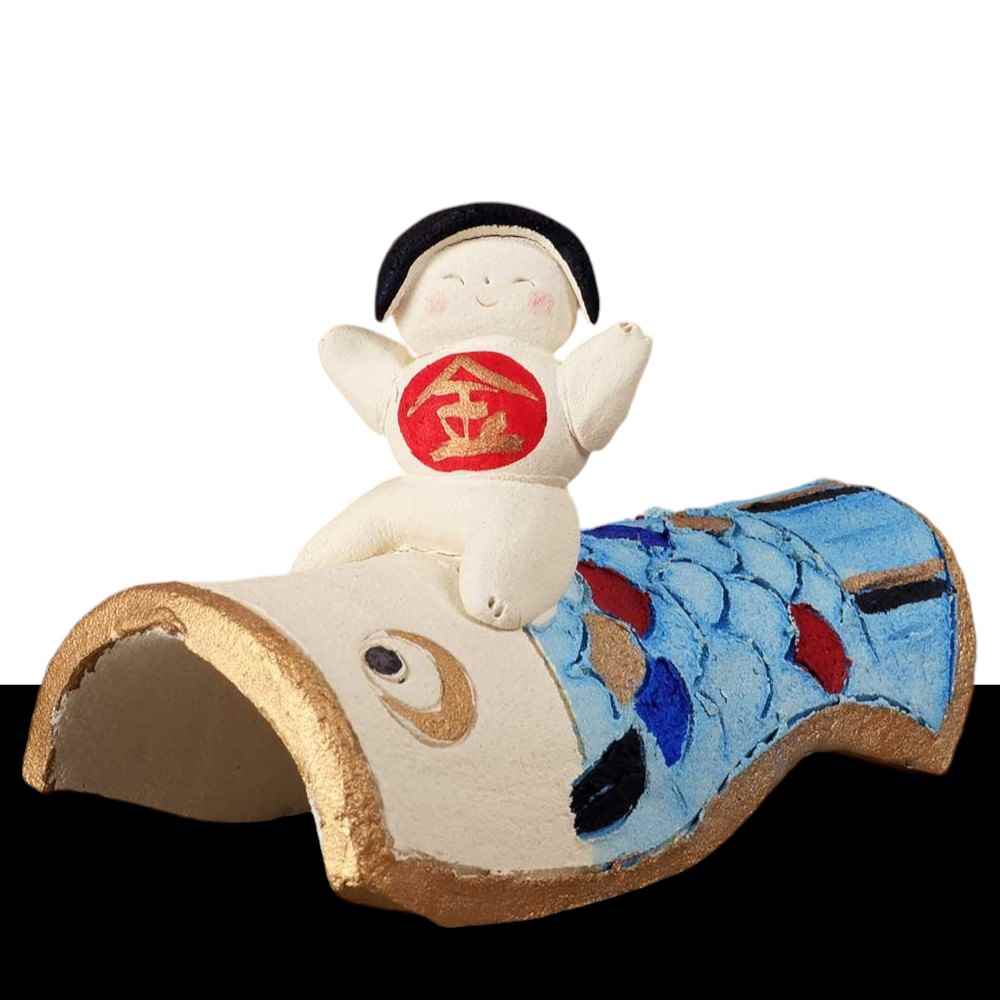 五月人形 コンパクト 陶器 小さい おとぎ話 金太郎/ 人形師の手造り置物 弥生窯作 鯉のぼり金太郎 /こどもの日 端午の節句 初夏 お祝い 贈り物 プレゼント