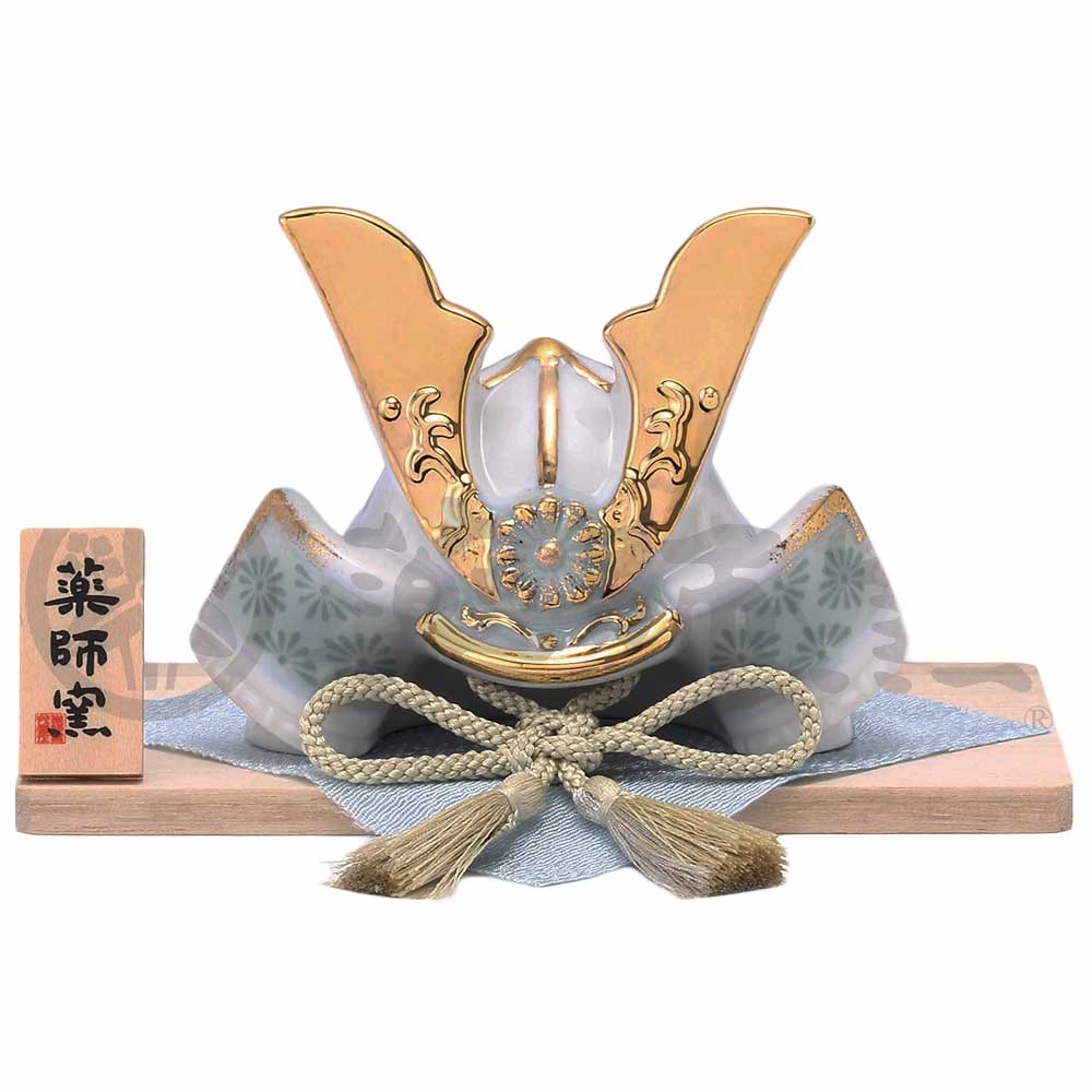 五月人形 コンパクト 兜 陶器 小さい/ 染絵出世兜(白藍) /こどもの日 端午の節句 初夏 お祝い 贈り物 プレゼント