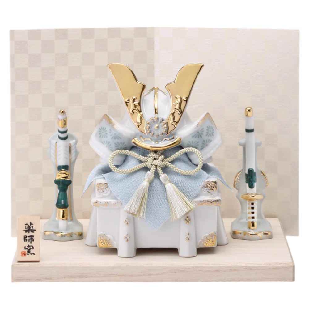 五月人形 コンパクト 兜 陶器 小さい/ 染絵出世兜飾り(白藍) /こどもの日 端午の節句 初夏 お祝い 贈り物 プレゼント