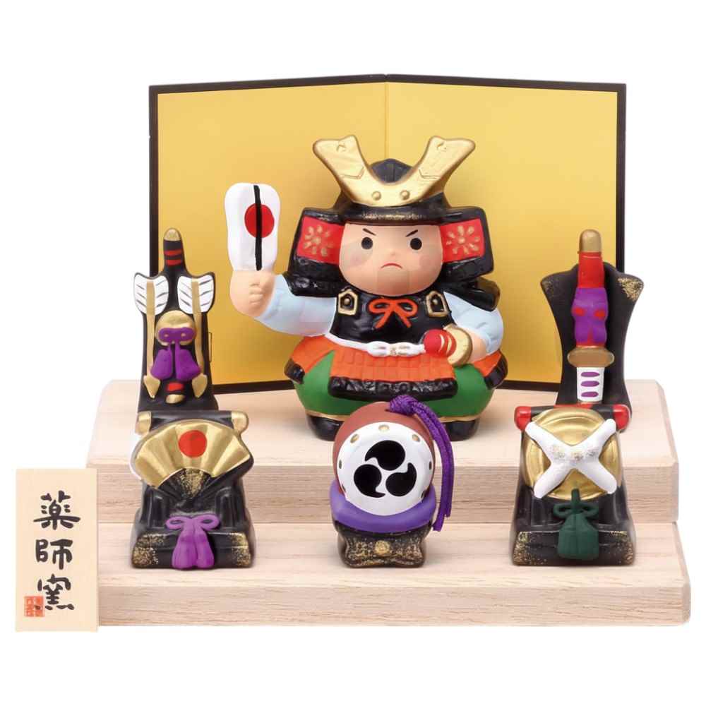五月人形 コンパクト 武将飾り 陶器 小さい/ 錦彩わらべ大将(平飾り) /ミニチュア 初節句 お雛様 おひな様