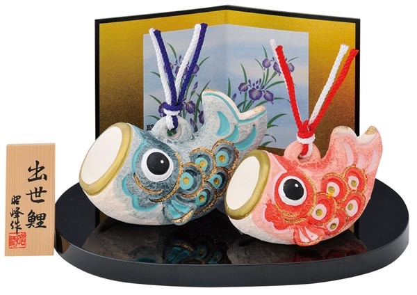 五月人形 コンパクト 陶器 小さい 鯉のぼり/ 鯉のぼり福鈴(水三彩)夫婦 /こどもの日 端午の節句 初夏 お祝い 贈り物 プレゼント