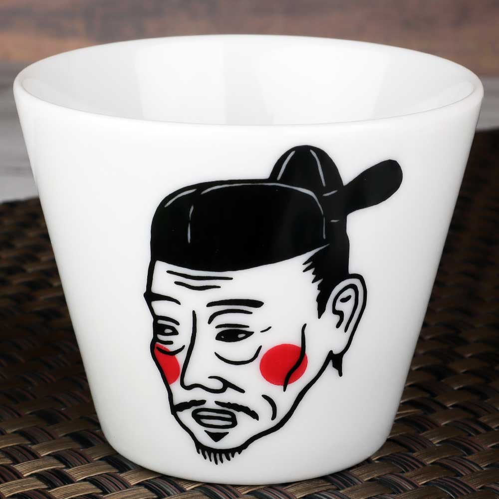 冷たい飲み物を注いで、カップ表面がおよそ17℃以下の温度になると武将のほっぺが酔っぱらった時のようにポッと赤くなる、面白い仕掛けを施したぐい呑みです。