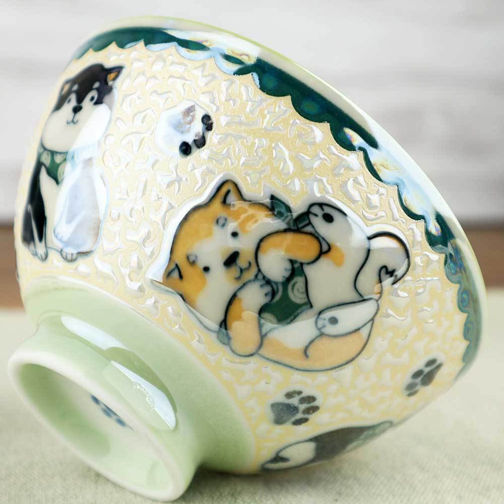 茶碗 猫 可愛い 柴犬/ キラキラパール★柴犬茶碗 中平(グリーン) /毎日 家庭用 使いやすい