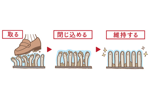 ダスキン独自のパイルで、靴裏の汚れをしっかりかき取ります。