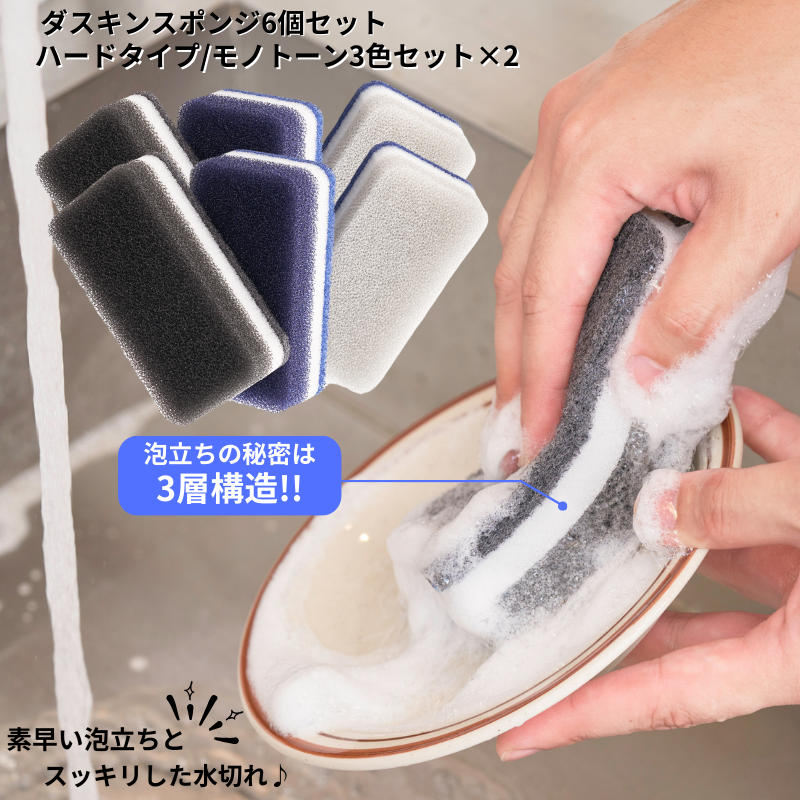◎ダスキンスポンジ 新色 3色セット×2(モノトーン6個)ハードタイプ