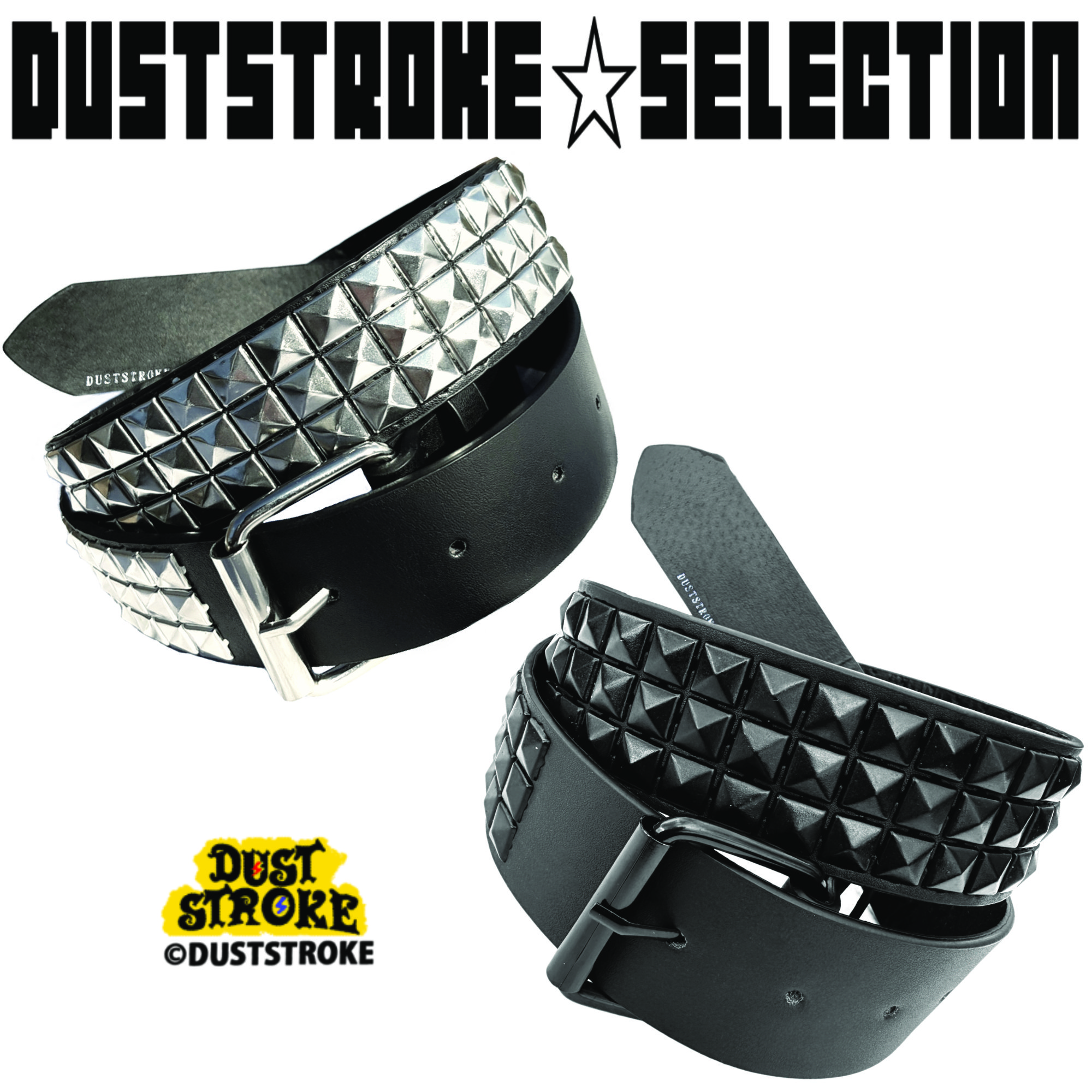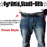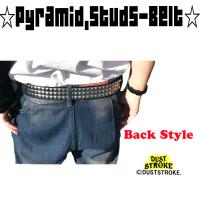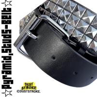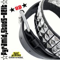 DUSTSTROKE (ダストストローク) 3連 スタッズ ベルト 鋲 PU レザー ピラミッド メンズ ブラック シルバー 黒 銀