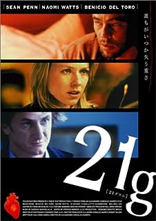 大学教授のポールは難病を患っていたが、交通事故で死んだ男の心臓を提供されて一命を取りとめる。退院したポールは心臓の提供主の妻クリスティーナを探し出すが、彼女は、交通事故を引き起こした犯人への復讐を決意していた。『アモーレス・ペロス』のアレハンドロ・ゴンザレス・イニャリトゥ監督がまたしても、交通事故を媒介に結びつく3人の物語を展開。だが、オムニバス風だった前作とは大きく異なり、心臓移植によって否応なく三者が強固に結びつくドラマを、迫真の演出で描写。魂の重さを意味するタイトル通り、生の意味を深く考えざるをえない作品に仕上がっている。