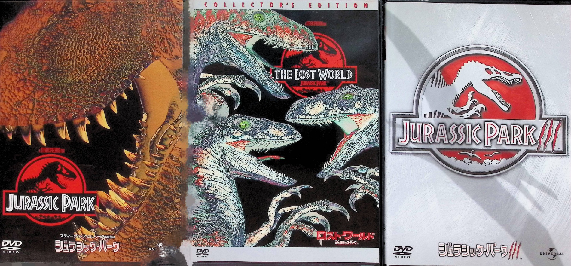 (1)「ジュラシック・パーク」“ベストセラー量産作家”マイケル・クライトンの原作を、驚異の映像技術で見事映像化した大ヒット映画。50分にもおよぶメイキング映像をはじめ、特典映像も充実している。(2)「ロストワールド/ジュラシック・パーク」“ジュラシック・パーク”計画から4年。絶滅したはずの恐竜が、ある孤島で自然繁殖していることが確認された。前作で生き残った学者のマルコムが現地に乗り込むが……。(3)「ジュラシック・パークIII」『ロスト・ワールド』の舞台となった島で行方不明になった息子を探しに、両親たちがやって来るが……。シリーズ第1作で登場した古生物学者グラント博士が、さらにパワー・アップした恐竜たちに挑む。