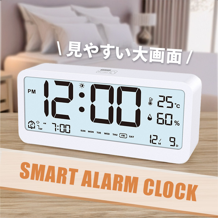 デジタル時計 置き時計 目覚まし時計 カレンダー 温度 湿度 計 見やすい大画面表示 アラーム スヌーズ機能付き