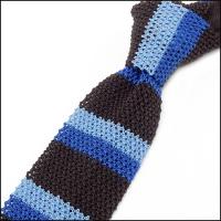 イタリー製(カネパ社) ニットタイ ネクタイ 剣先6cm 綿100% 茶×青×スカイブルー ボーダー CNN72