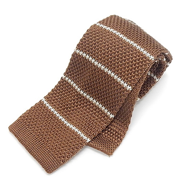 ニットタイ ネクタイ 剣先6cm シルク100% 黄褐色×白