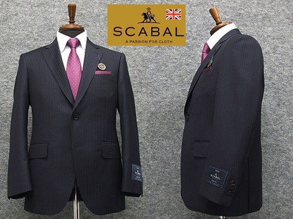 通年〜春夏物 [Scabal] スキャバル Super140sオーダー生地使用 ベーシック2釦スーツ 濃紺縞 日本製 [A体][AB体][BB体] ロゴ裏地 scb105