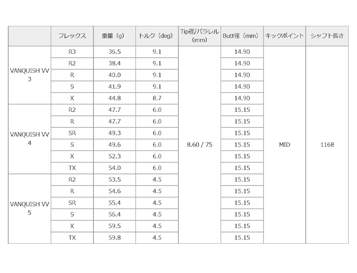 ゴルフ シャフト スリーブ付き ヴァンキッシュ VV 三菱ケミカル ドライバー フェアウェイウッド