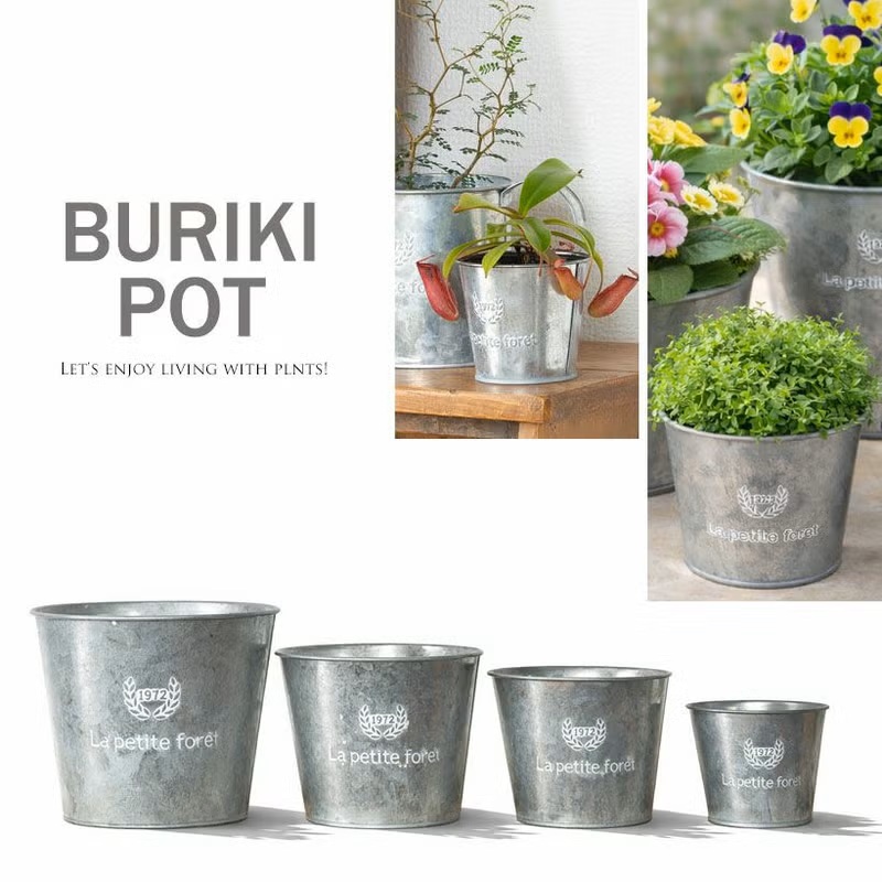| ブリキ鉢(鉢底穴あり) ※鉢底穴をふさぐ、インナーカバー付き。「植えこみ」「鉢カバー」両方使えます。 | ||||