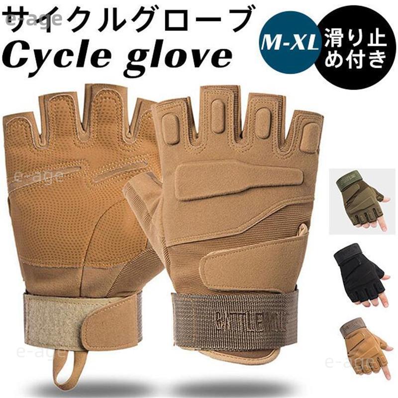 手袋 サイクリンググローブ 保護グローブ サイクルグローブ 指切り ミリタリー クッション性 無地 滑り止め付き トレーニング バイク 頑丈 自転車