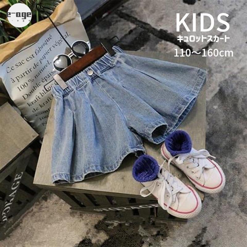 キュロットスカート デニム ボトムス キッズ 子供服 女の子 スカート見え キュロットパンツ ショートパンツ 短パン カジュアル かわいい おしゃれ
