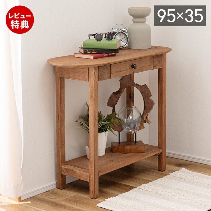 (豪華2大特典)コンソール テーブル 棚 収納 引き出し付き ナチュラル 木製 古材 アンティーク 飾り ヴィンテージ 天然木 デスク 作業台 机