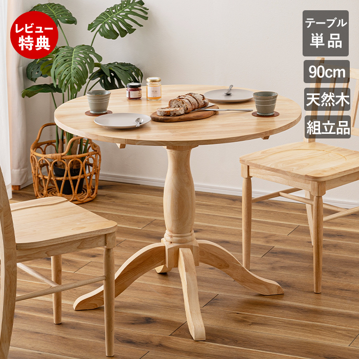 | 使いやすい直径90cmの丸天板と1本脚のダイニングテーブル |