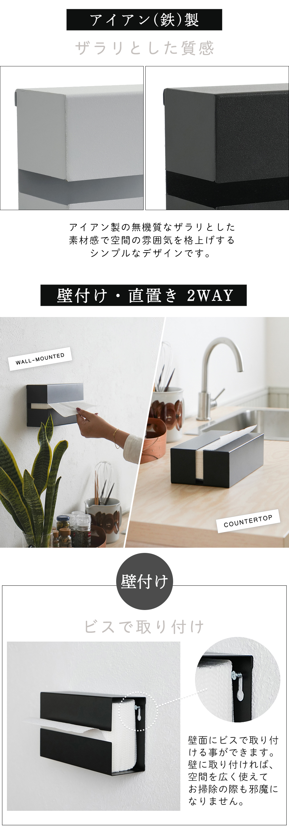 ペーパータオルホルダー ペーパータオルケース ペーパータオルディスペンサー ペーパータオル収納 キッチンペーパーケース キッチンペーパーホルダー 壁付け 置き型 アイアン おしゃれ シンプル 北欧 モダン マット 壁掛け 洗面所 キッチン雑貨 ブラック グレー 横 縦 固定 ビス 小判型 新生活 新居