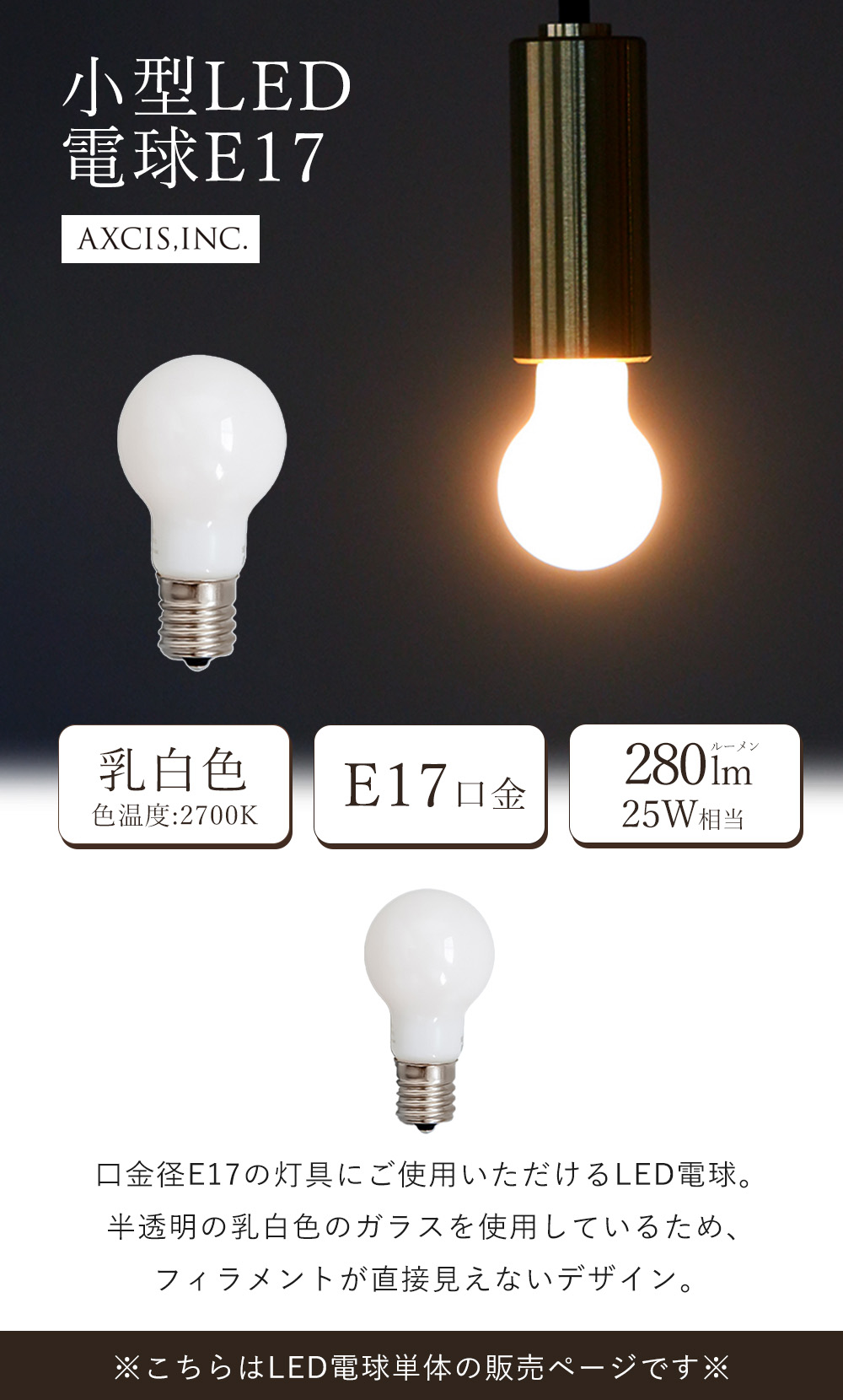 小型LED電球 E17 一般電球 フィラメント 乳白色 ライト クラシカル 280ルーメン 2700K E17口金 おしゃれ HS3809 アクシス axcis