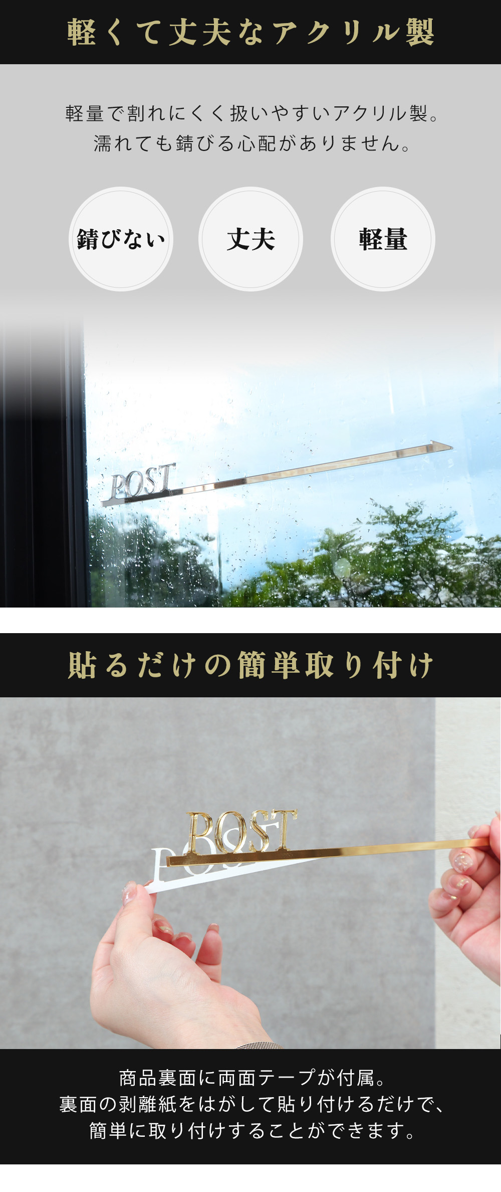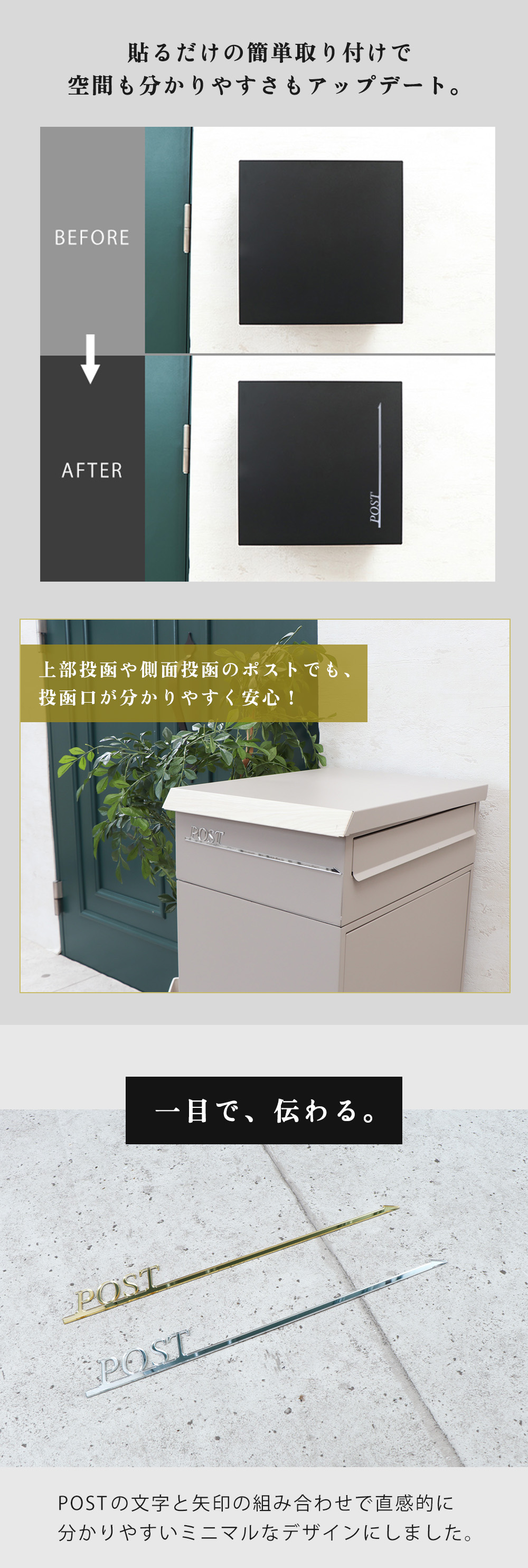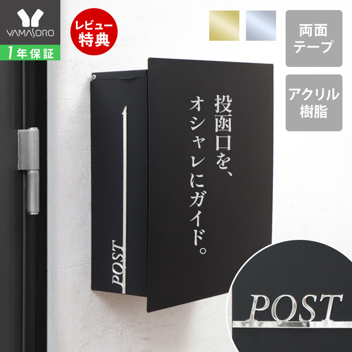 ポスト アクリル サイン プレート 投函 口 矢印 案内 屋外 おしゃれ シール ステッカー メールボックス 立体 ゴールド シルバー グラシス