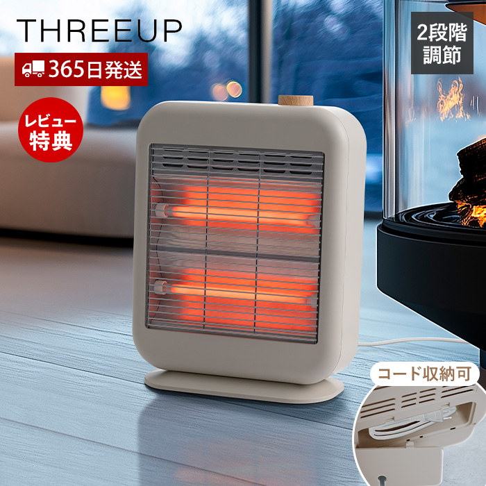 スマート ストーブ 電気 おしゃれ 小型 ヒーター 足元 コンパクト 自動オフ 暖房 木目 調 北欧 遠赤外線 軽量 DST-2531 THREEUP WOOD STYLE