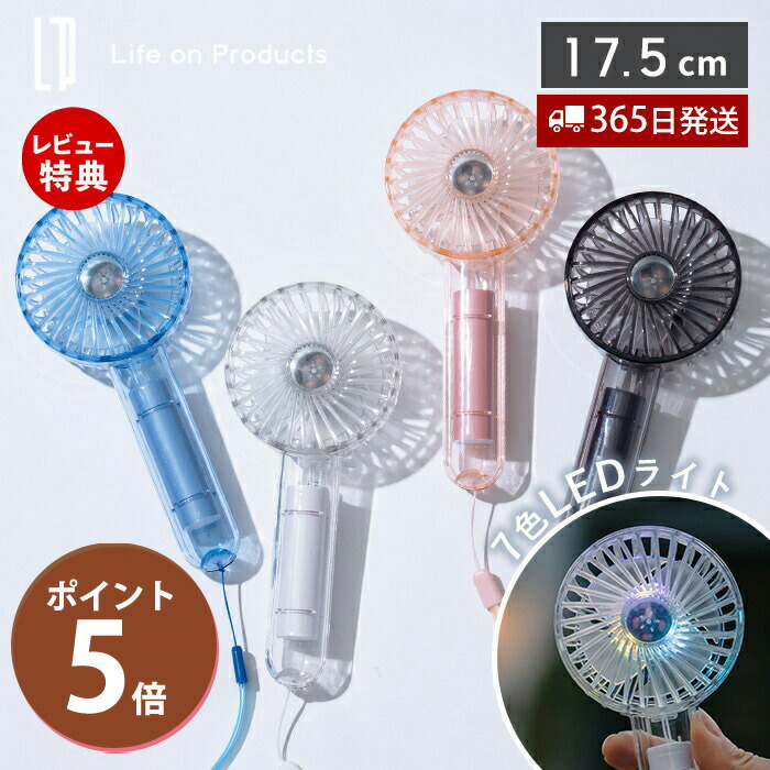 ミニクリアファン LEDライト付き | 静音ミニハンディファン ネックストラップ&スタンド付 |