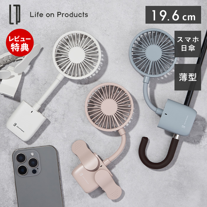スマホも挟める 薄型 クリップファン コンパクト ハンディ 卓上 扇風機 日傘 風量調節 ライフオンプロダクツ life on products LCAF021