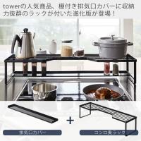 towerの人気商品、棚付き排気口カバーに収納力抜群のラックが付いた進化版が登場!汚れをカバーしながらキッチン周りをすっきり整頓できる優れものです。