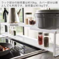 排気口カバーも棚としてご利用いただけます。排気口カバーの耐荷重は約1kg。スパイスボトルなどを置くのにちょうどいいサイズです。