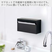 マグネットで冷蔵庫や玄関扉に取り付けても、テーブル上にそのまま置いても使えるペーパーホルダーです。奥行きが約8.7cmとスリムなので、壁に取り付けても卓上でもかさばらずスマートに使用できます。