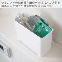 シャンプーの詰め替え用の空き袋や、使わなくなった歯ブラシ、空きペットボトルなど浴室で出るゴミが捨てられる便利なゴミ箱です。奥行きがスリムで高さが約15cmあるのでお風呂で出る小さめのゴミを捨てるのにぴったりのサイズです。