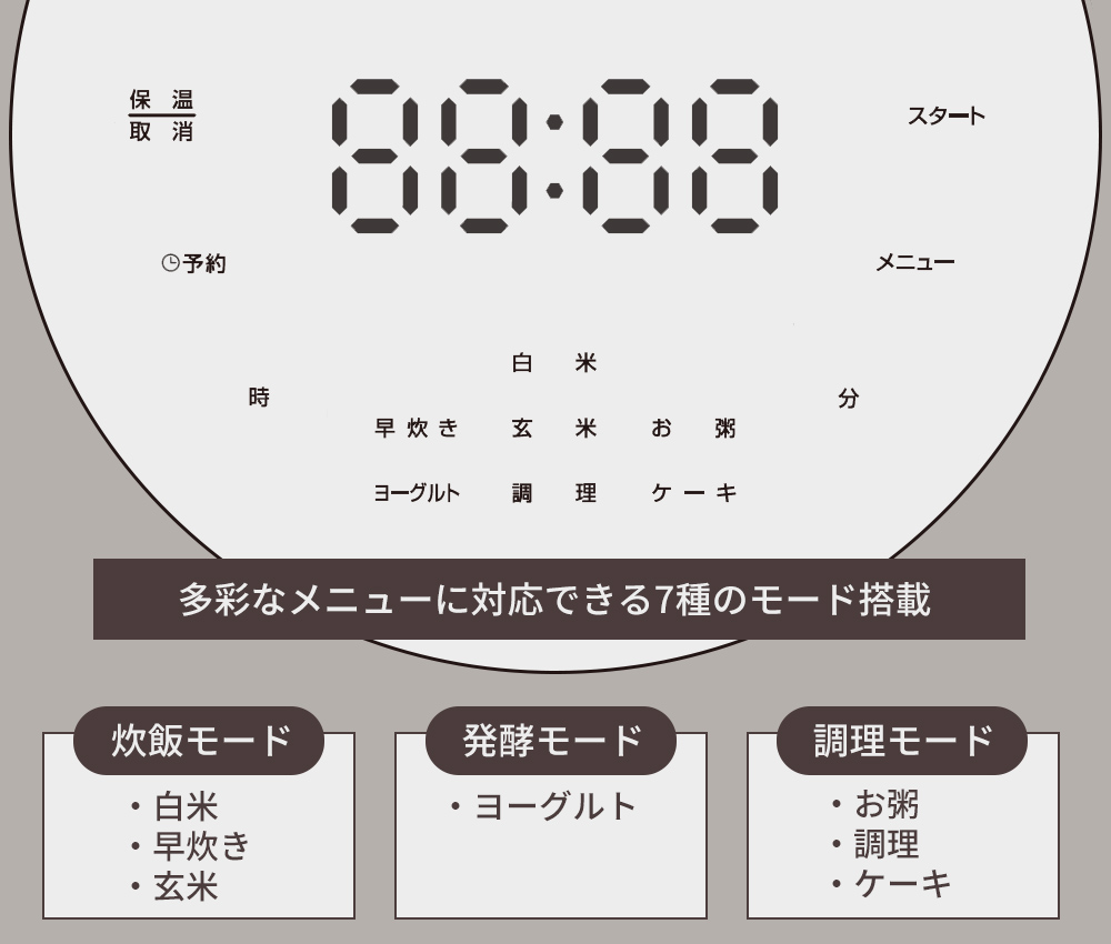 ※予約・保温機能はモードによっては設定できないものがございます。