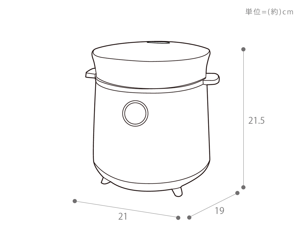 | サイズ | 約幅21×奥行19×高さ21.5cm 内釜:約直径14.5×高さ10cm(約1.2mm厚) ※コード:約105cm |