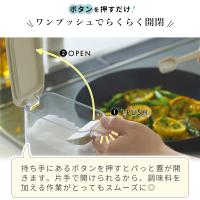 | お手入れ | ・パッキンに小麦粉や片栗粉など粉末状の調味料が付着するとフタが開きやすくなります。パッキンに粉末が付着しましたら水洗いし、水分を拭き取ってからお使いください。 ・たわしまたは磨き粉を使用すると傷がつくことがあります。 ・ご使用前に食器用洗剤等で洗ってからお使いください。 |