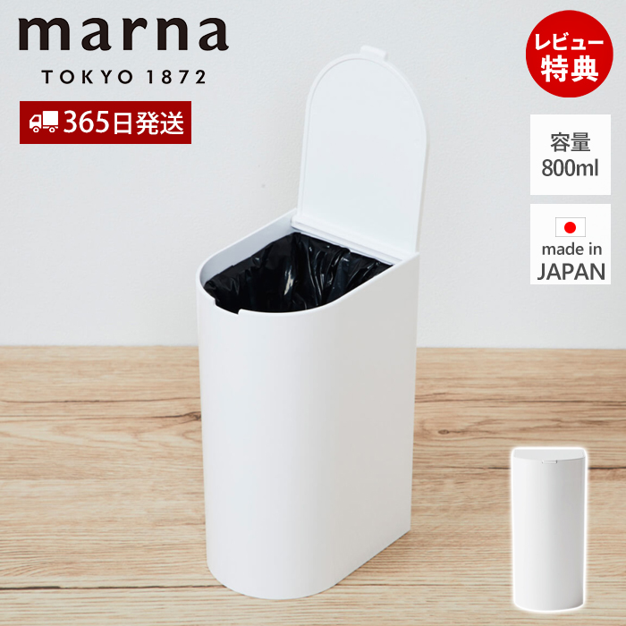 marna マーナ SLIMトイレポット W202 サニタリーボックス ごみ箱 ダストボックス トイレ用 ホワイト 800ml 大容量 日本製 made in Japan