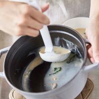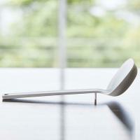先端が浮くデザインで直置きにならず清潔に使用できるシリコン製お玉