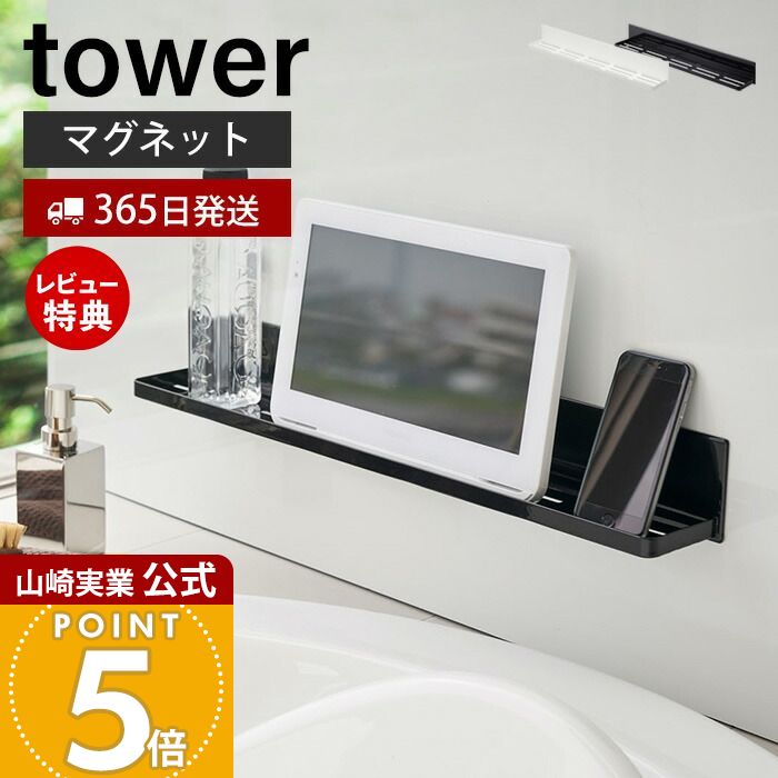 ディスペンサーなどのバス小物、タブレットやスマホなどの半身浴のお供の収納に便利、マグネットのつく壁に簡単に取り付け可能な幅約60cmのワイドラックです。
