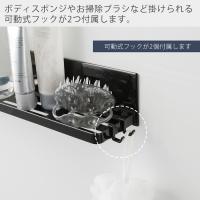 ラックのふちに取付できる可動式フックが2つ付属します。ボディスポンジやお掃除ブラシなどを掛けておくことができます。