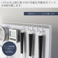 パネルの上部に取り付け可能な可動式のフックが8個付属します。フック穴が付いたお玉やフライ返しなどのキッチンツール、ミトンや鍋敷きなどのキッチンアイテムを引っ掛けて収納できます。