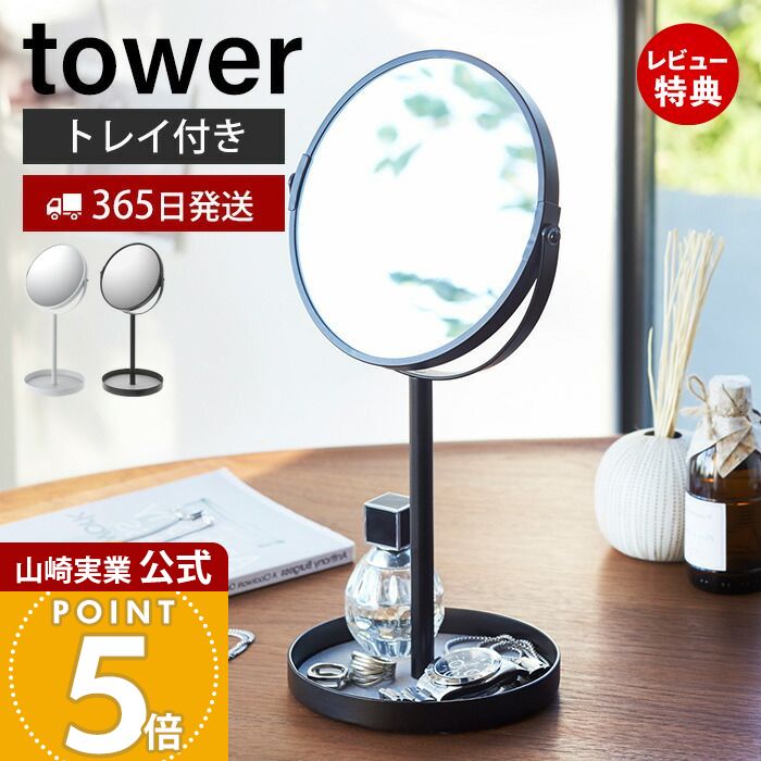 山崎実業 公式 タワー スタンドミラー&トレイ tower おしゃれ 鏡 ミラー 卓上 両面 拡大鏡 トレー付き 化粧品 メイク 小物入れ 2819 2820