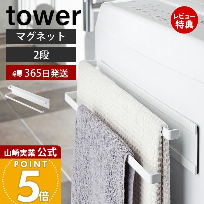 山崎実業 公式 タワー 洗濯機横マグネットタオルハンガー 2段 tower おしゃれ 磁石 部屋干し タオル掛け バスタオル バスマット 2956