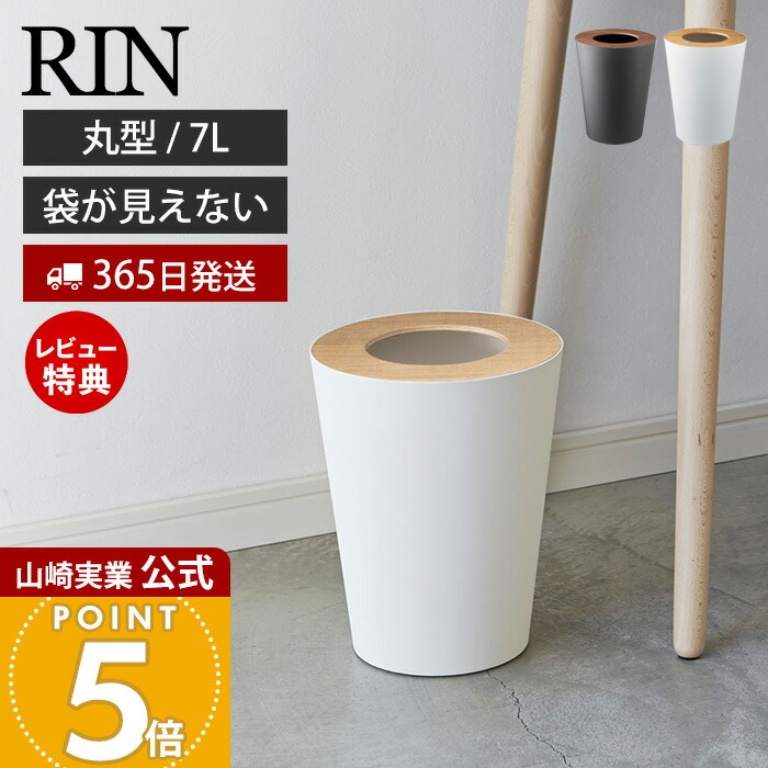 山崎実業 公式 リン トラッシュカン 丸型 RIN おしゃれ ゴミ箱 ダストボックス コンパクト 7L くずかご おしゃれ スリム 木目 3197 3198