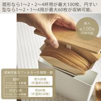 扇形なら1〜2・2〜4杯用が最大100枚、円すい型なら1〜2・1〜4用が最大60枚が収納可能です。一人暮らしからファミリー層、オフィスでもコーヒーペーパーフィルターのストック収納としてご使用いただけます。