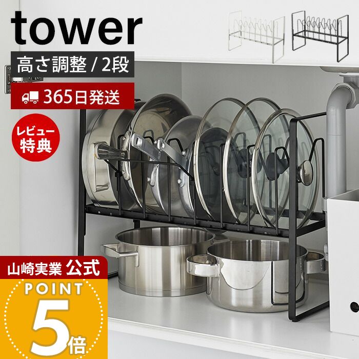 | 商品名 | シンク下高さ調整鍋蓋&フライパン収納ラック 2段 タワー |