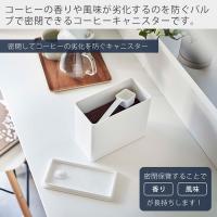 コーヒーの香りや風味が劣化するのを防ぐバルブで密閉できるコーヒーキャニスターです。丸型が多いコーヒーキャニスターの中ではちょっと珍しい、引き出しや戸棚の中で収納しやすい長方形タイプです。