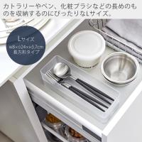 約幅8×奥行24×高さ3.7cmのLサイズ。カトラリーやペン、化粧ブラシなどの長めのものを収納するのにぴったりです。別売りのS・Mを上に重ねて使用しても便利です。