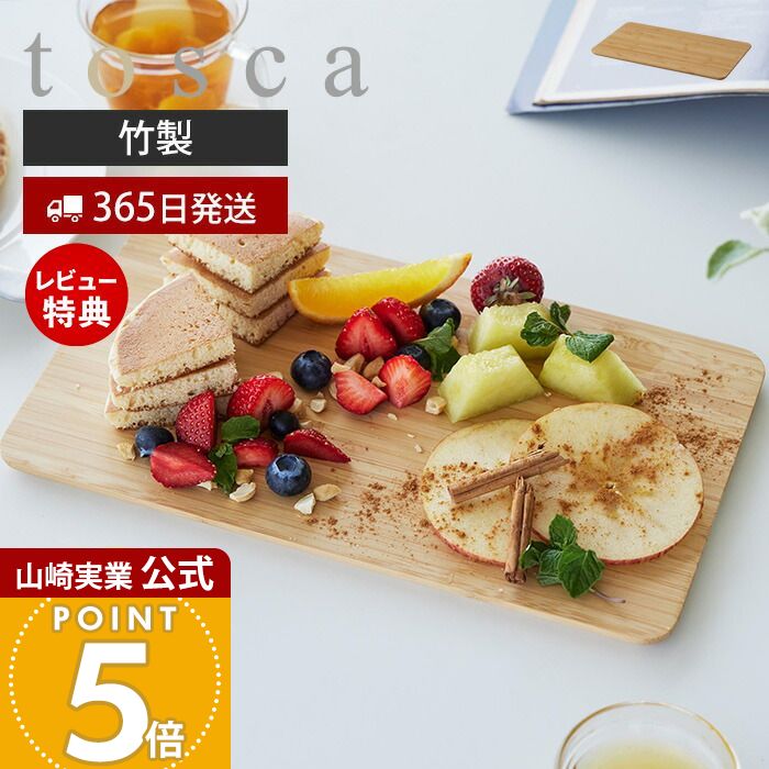 toscaのナチュラルな雰囲気にぴったりのまな板が登場。刃当たりがやわらかくて包丁が長持ちする竹を使用しています。竹製のまな板は水に強くて耐久性にすぐれ、抗菌・消臭効果があります。