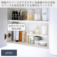 無駄なスペースができやすい洗面鏡の中の収納スペースを有効活用できる便利なラックです。